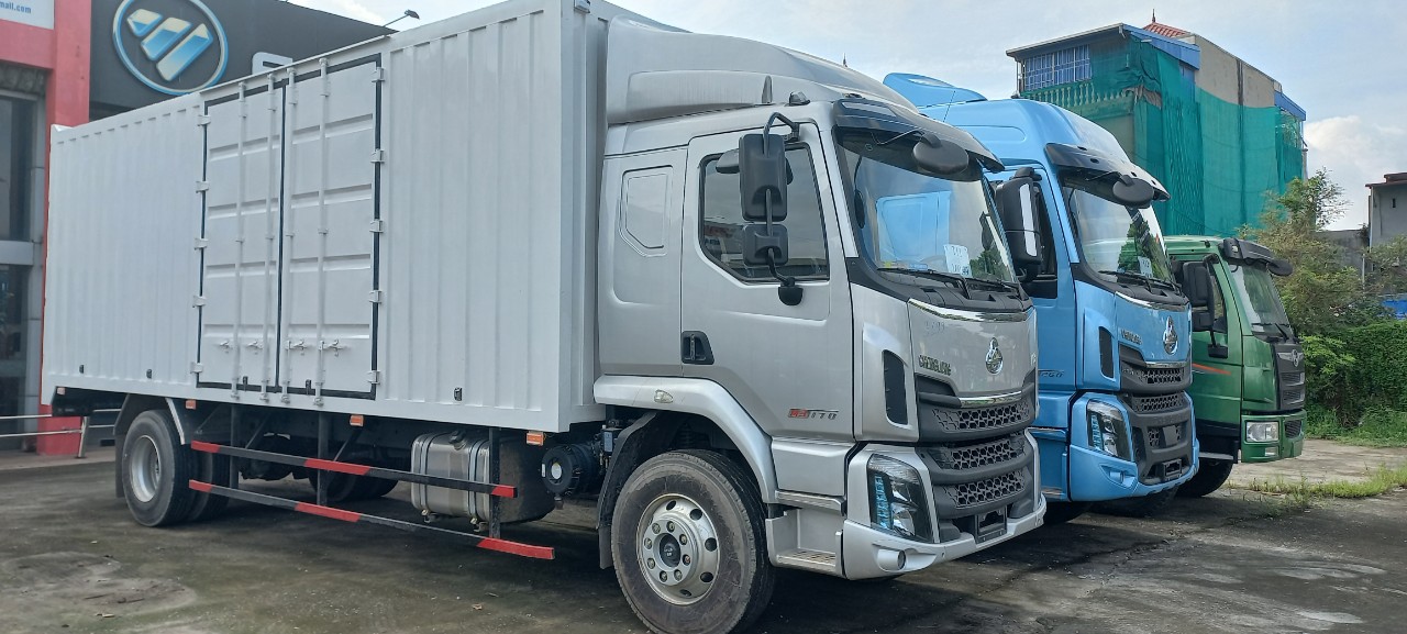 7. Chenglong M3 170HP thùng kín Container tải trọng 9.3 tấn, kích thước lòng thùng hàng dài 7.5m x rộng 2.4m x cao 2.3m.